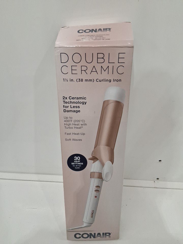 CONAIR DOUBLE CERAMIC CURLING IRON - 1 1/2" - WHITE/ROSE GOLD (MODEL: CD703GN)