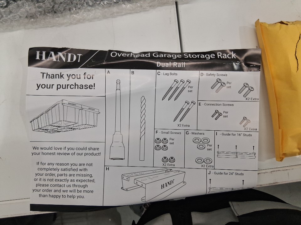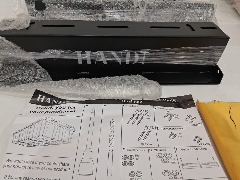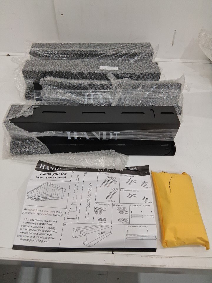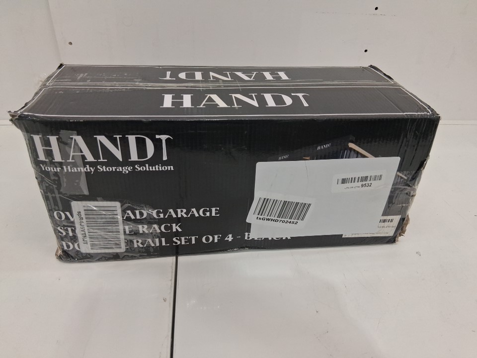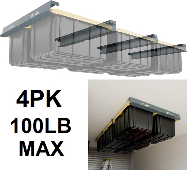 4PK HANDT Connectable Heavy Duty Overhead Garage Storage Rails/Racks for Containers - hold 8 bins- 100lb max - black (model: ‎‎HANDT-B8)