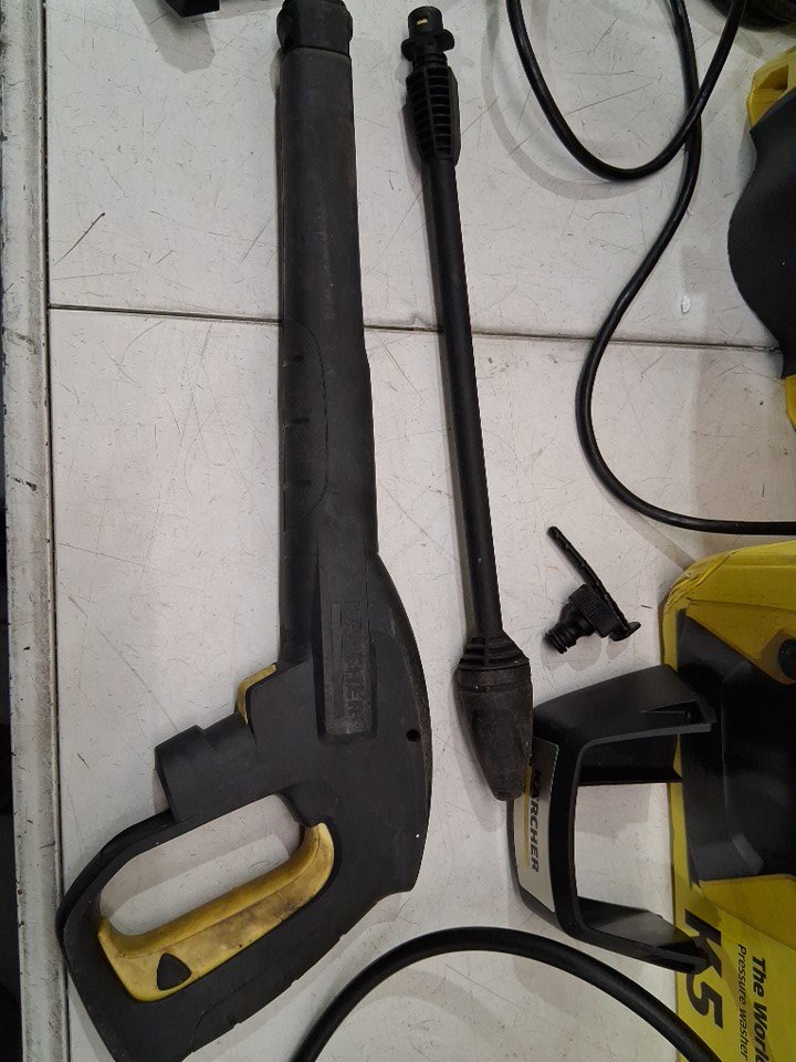 There was some water in the hose and dirt on the pressure washer/attachment indicating previous use. Please note that the top/front handles are broken (see photos) Tested for power