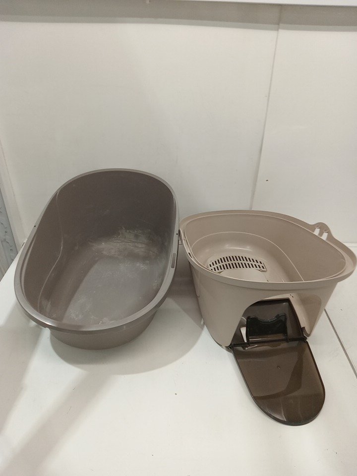 the litter box is dirty, but it should be easy to clean, and is still in good shape. please see photos