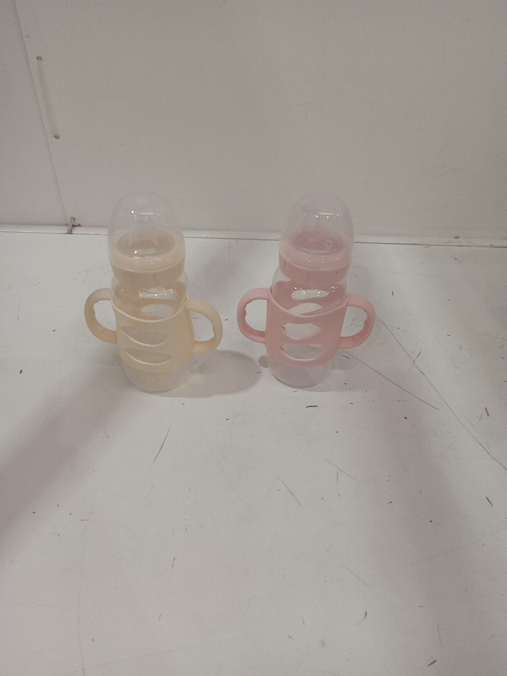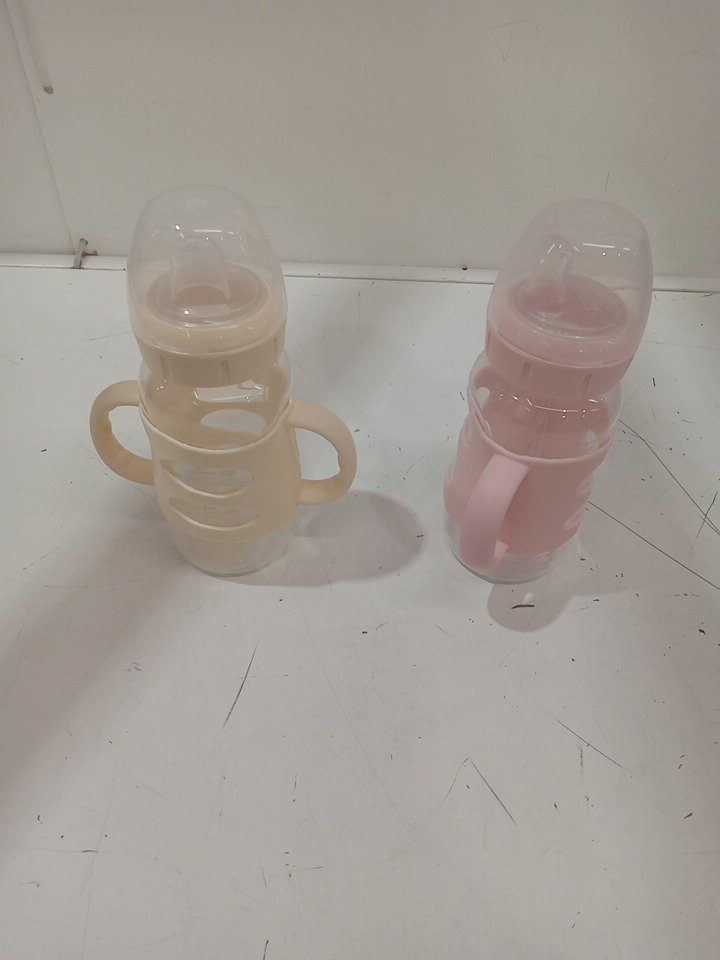 2pk dr browns milestones wide neck sippy bottles with silicone handles - 9oz - light pink/ Ecru