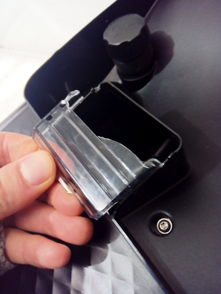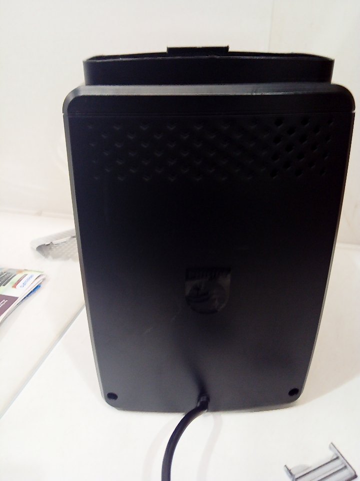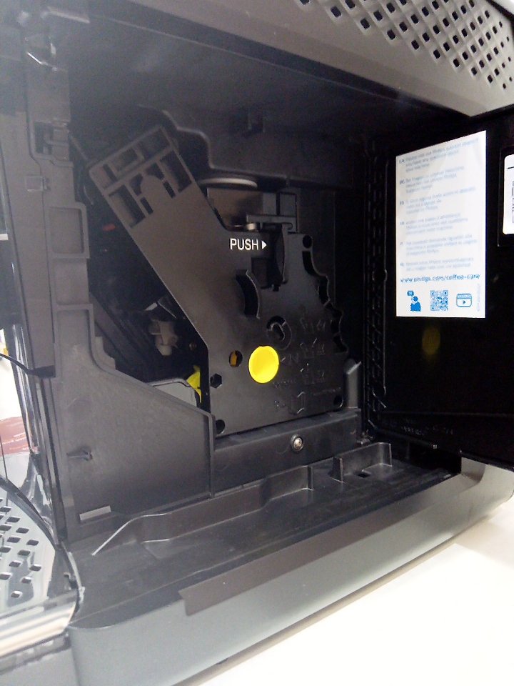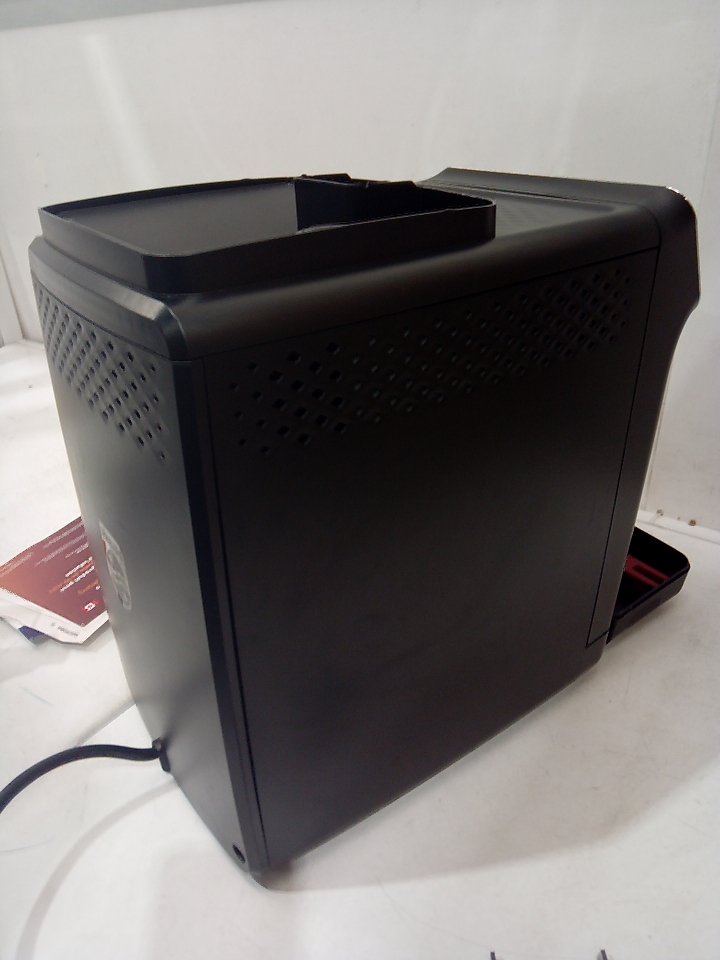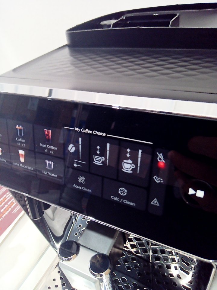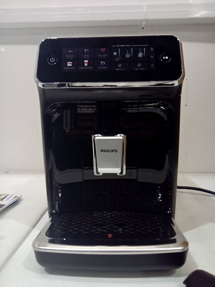 There are scratches, dust and coffee residue on the outside. The scoop is broken/cracked. The small plastic flap for the top is cracked and half of it is missing, there is also minor damage to the hinge its supposed to rest on. The plastic on the back of the milk cup has a piece cracked off. Tested for power. (SEE PHOTOS)