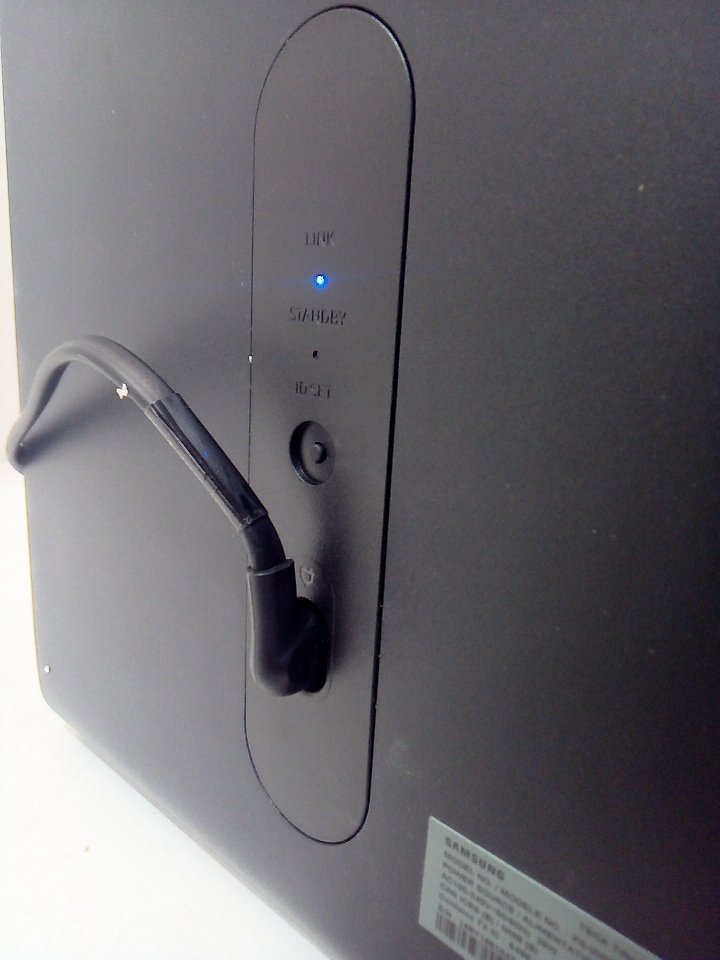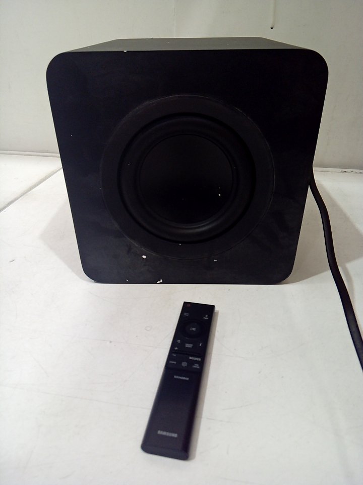 There are light markings and dust on the outside. Tested for power only. Please note that this subwoofer needs to be paired with a specific Samsung soundbar in order to be used as intended. (SEE PHOTOS)