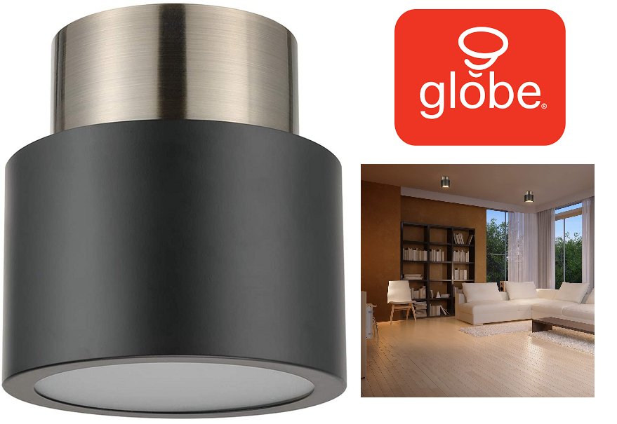 Globe Electric Hardwired Stanley Semi-flush Mount Ceiling Light - 6.3" - Matte Black/Antique Brass Accents (Model: GL61106)