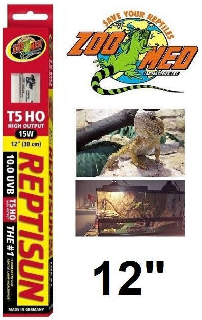 ZOO MED REPTISUN HIGH OUTPUT T5 HO REPTILE LIGHT FIXTURE UVB BULB - 5.0 UVB - 15W - 12" (MODEL: 26396)