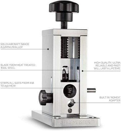 StripMeister Original Drill Powered Automatic Wire Stripper Machine for Stripping Scrap Copper Wire From #18 Gauge to 250MCM Including Romex Includes Ultra Long Lasting Blade Made From Heat Treated Tool Steel