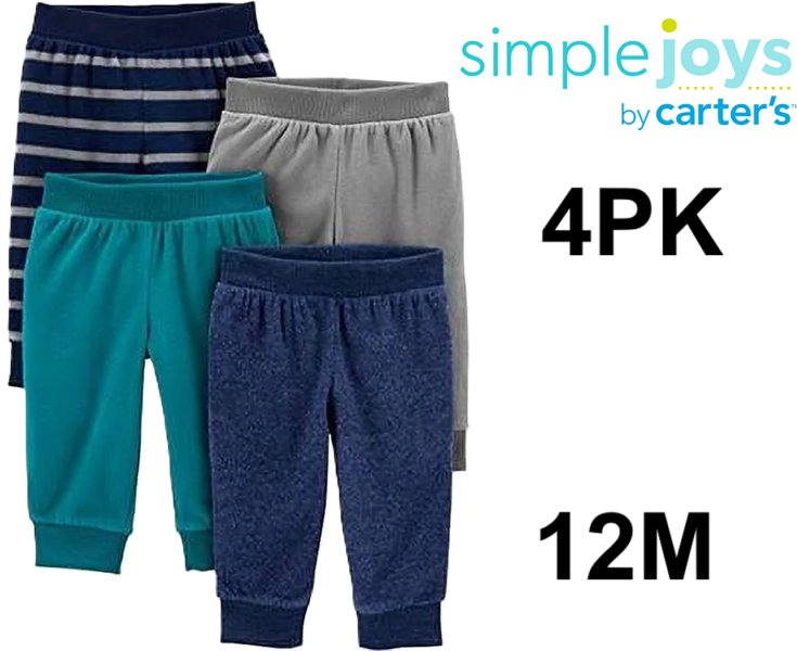 4PK Unisex Child's Simple Joys by Carter's Toddler Fleece Pants - Size 12M - Multicolour (Style: 11881)