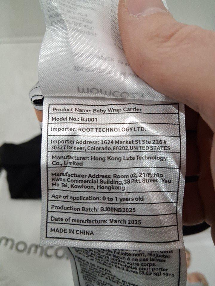 Momcozy Adjustable Baby Wrap Carrier Sling - up to 50lb - black (model: bj001)