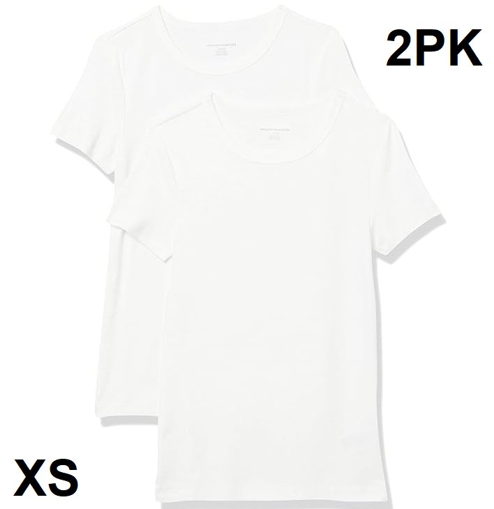 2pk women's amazon essentials slim fit short sleeve crewneck t-shirt -EXTRA SMALL - white
