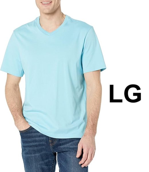 MEN'S AMAZON ESSENTIALS REGULAR FIT SHORT SLEEVE V-NECK T-SHIRT - Large - Teal Blue (STYLE: AEM20110SS22)