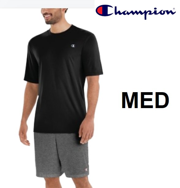 Mens CHAMPION Double Dry Small Chest Logo Athletic Shirt - MEDIUM -BLACK
