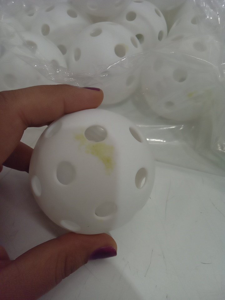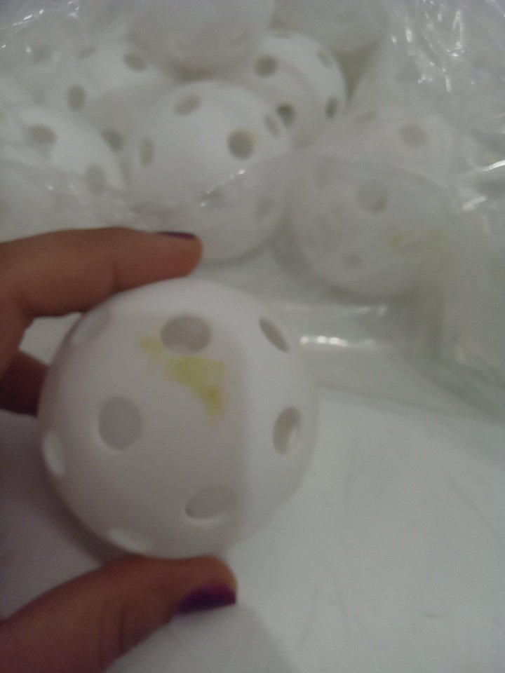 appears that some of the balls are scuffed and have some writing on them (see photo)
