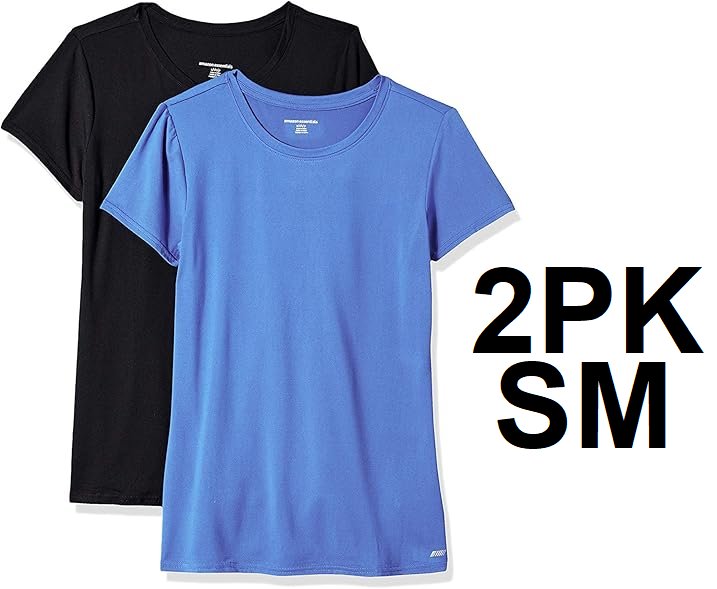 2pk women's amazon essentials Active Quick Dry Tech Stretch Short-Sleeve t-shirt - size: small - black/blue - (style: c241110ef60e)