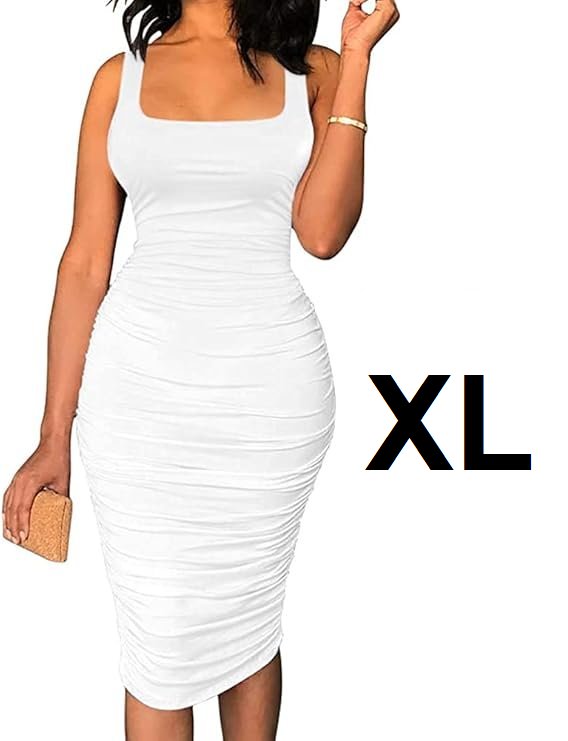 Women's Sexy Bodycon Tank Top Ruched Stretchy Dress - extra LARGE - WHITE