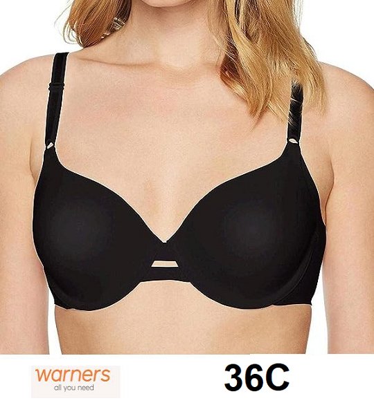 WOMEN'S Warners Blissful Benefits Underarm-Smoothing Comfort Underwire Lightly Lined T-Shirt Bra - 36C - BLACK (STYLE: RA3561W)