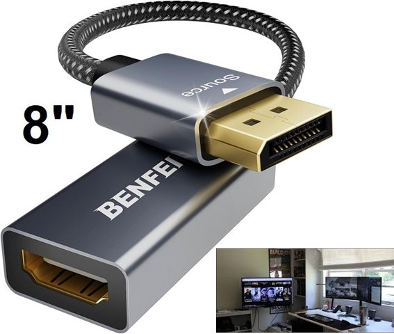 4K DisplayPort to HDMI Adapter Male to Female Cable - 8" - grey