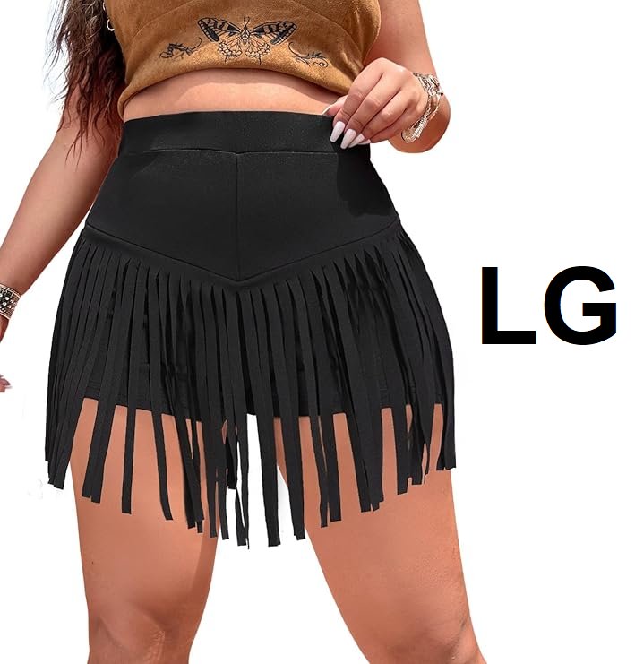 Women's ELLA LUST Western Cowgirl Fringe Shorts - large - black