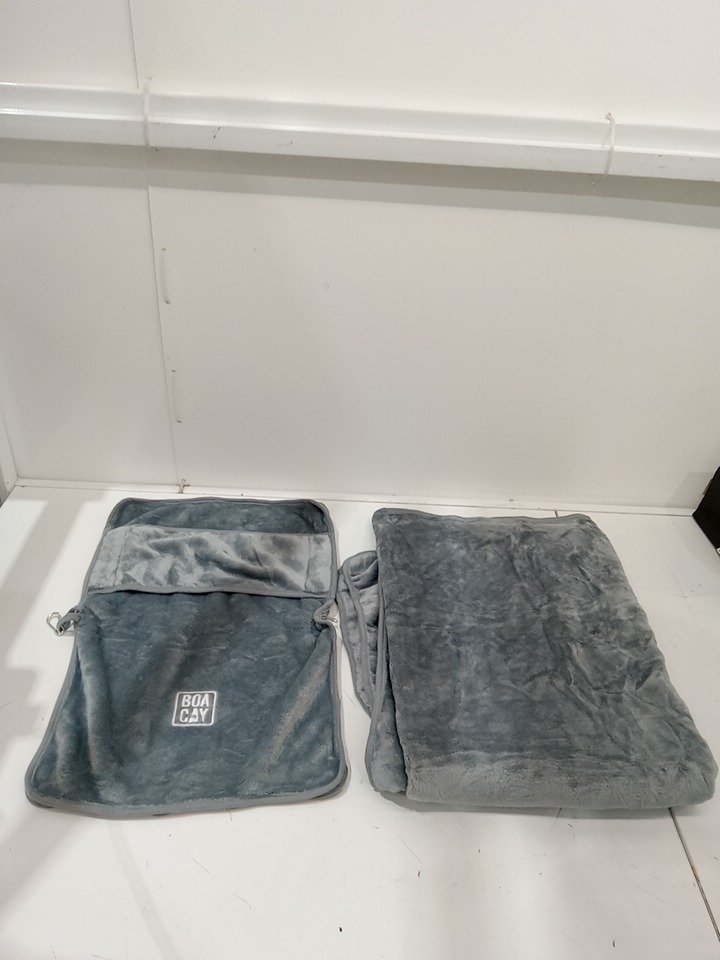 BOACAY Soft & Warm Travel Blanket for Airplane & Car WITH SUITCASE SLEEVE - 40" x 63" - grey