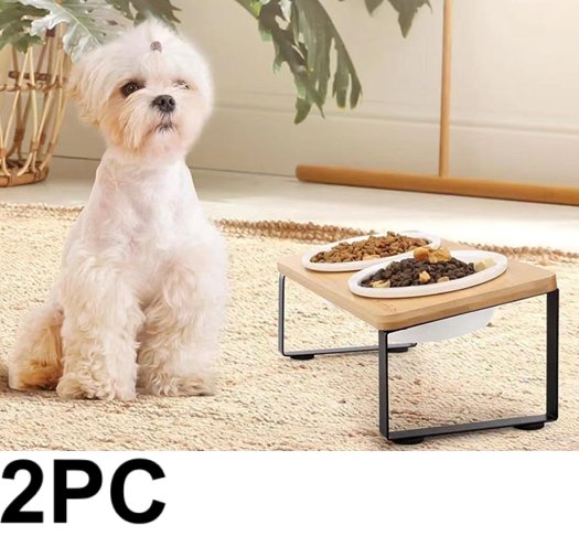 2PC Elevated Cat Food Bowls with Stand for Cats and Small Dogs- white