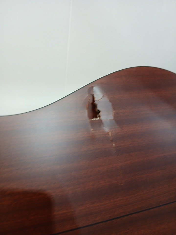 Please note there is a slit in the wood on the back of the neck, that may affect sound/function and will need to be mended, as well as some damage to the back of the base. See photos attached.