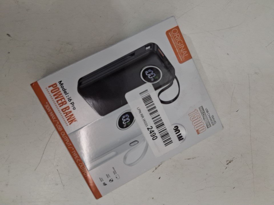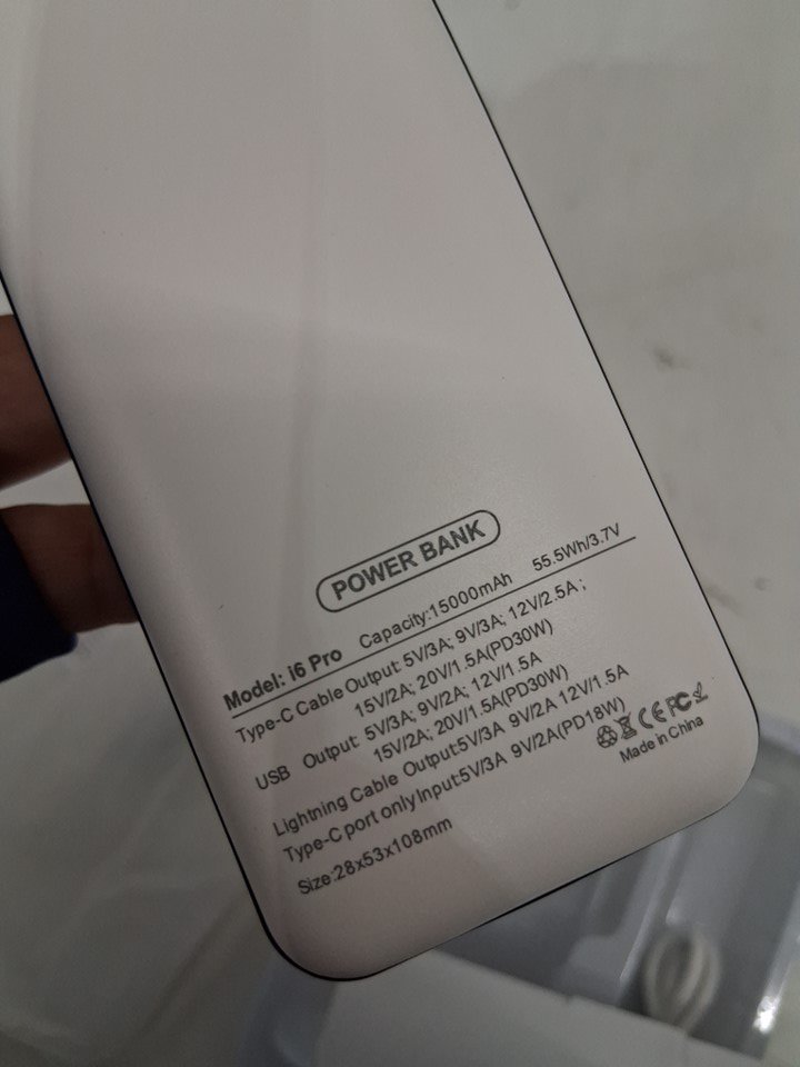 Portable FAST CHARGING Power Bank with type c and lightning bolt cable - 15000mah - white (MODEL: i6pro)