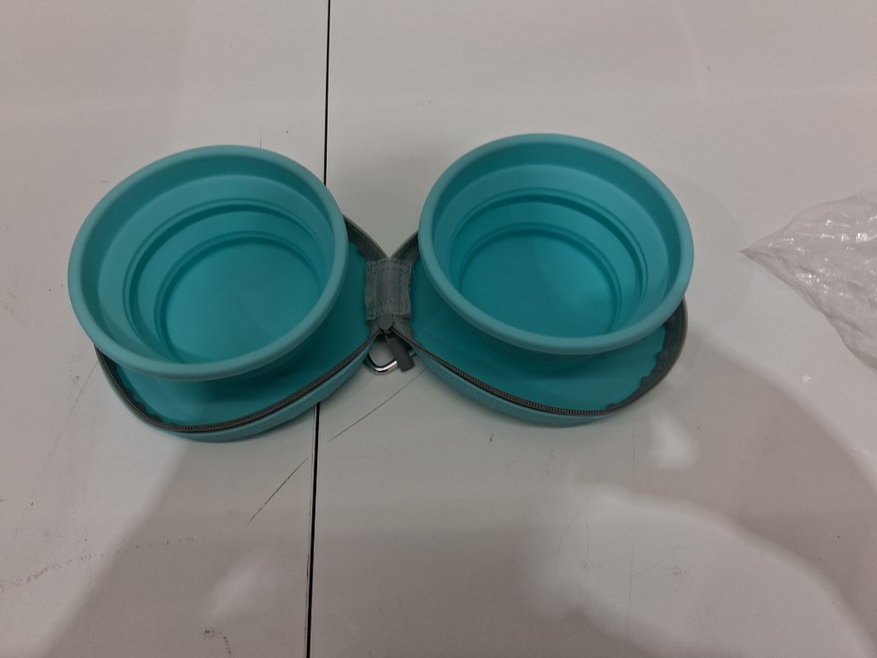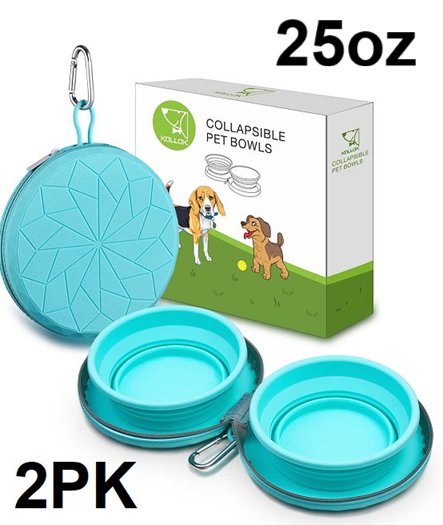 2pk kallak silicone twin collapsible pet bowl set with case - 25oz - blue