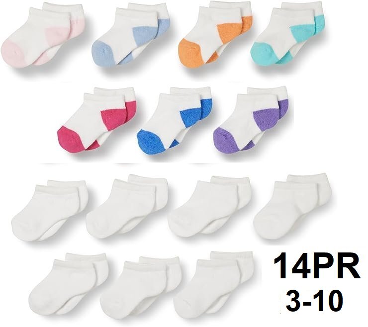 14PR KIDS unisex Amazon Essentials Cotton Low Cut Socks - 3-10 - Multi colored/white