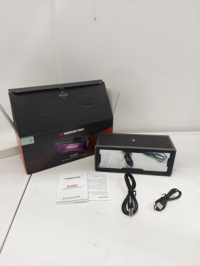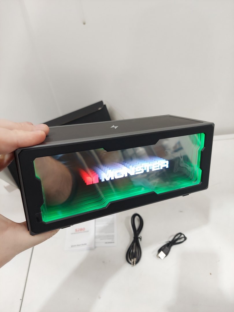 monster s280 bluetooth speaker with 3d tunnel light, 40w stereo sound, rich bass, & wireless charger - black (model: ms62135)