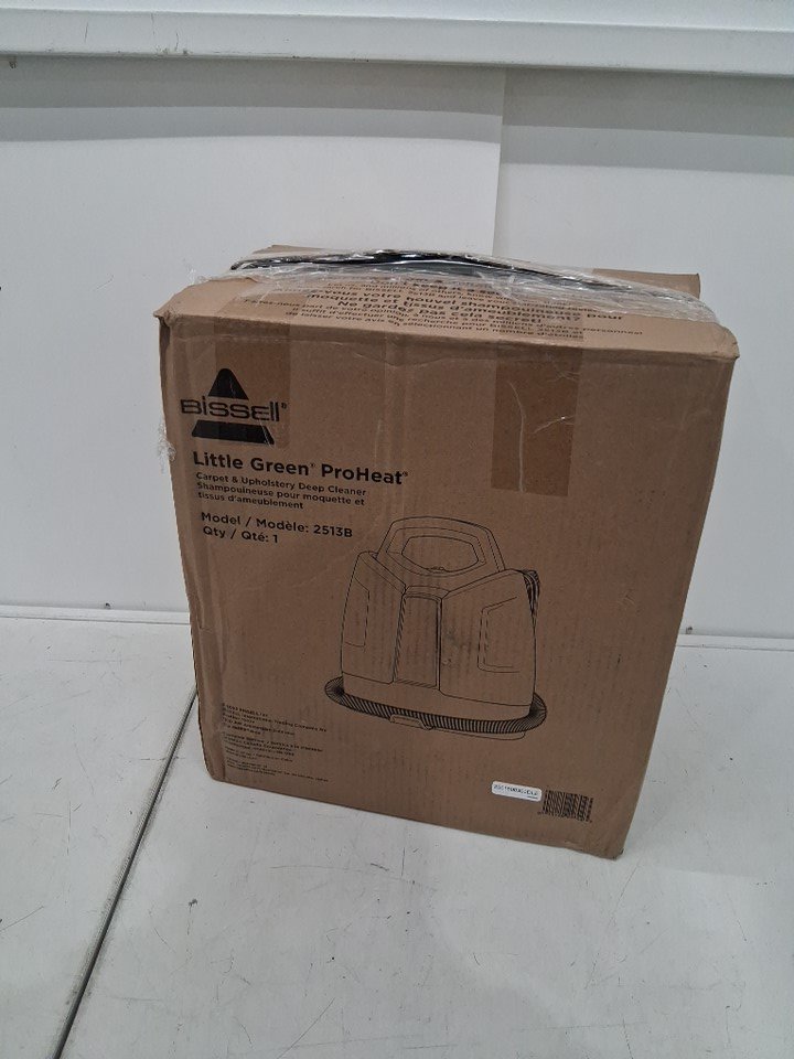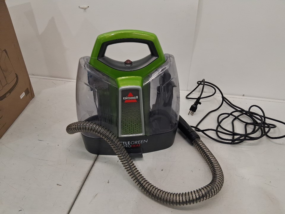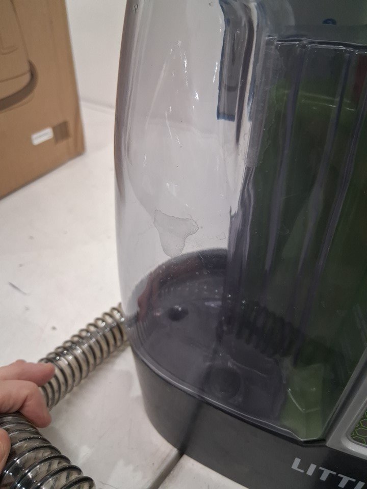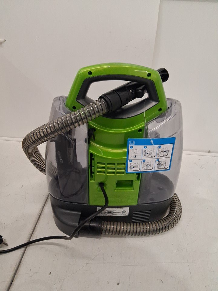 Spot cleaner has water spots in compartments. Brush attachments are missing. HAs been tested for power (no indicator light)