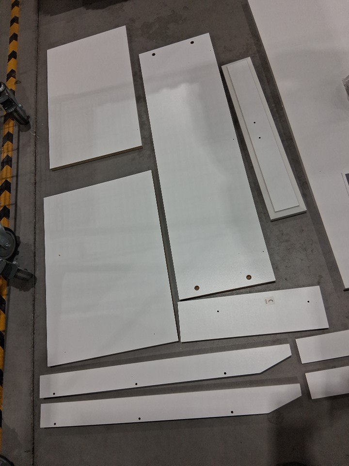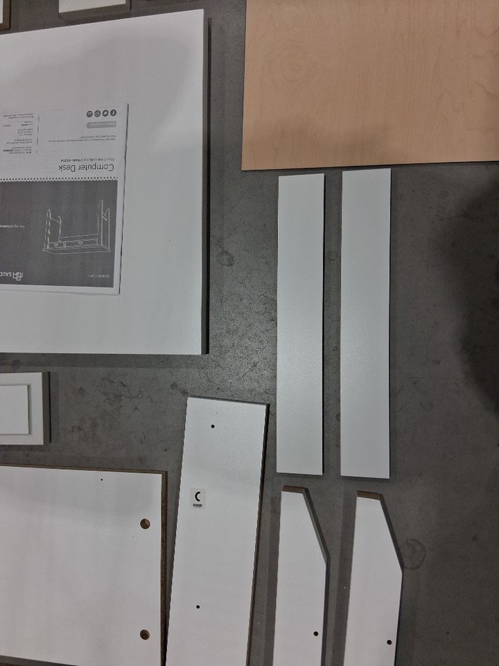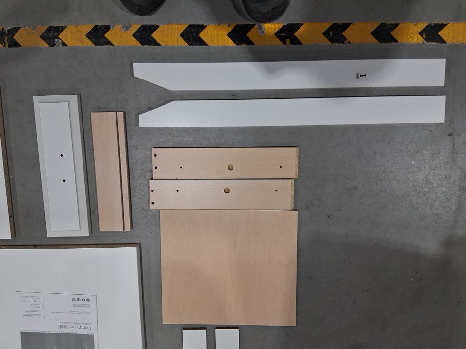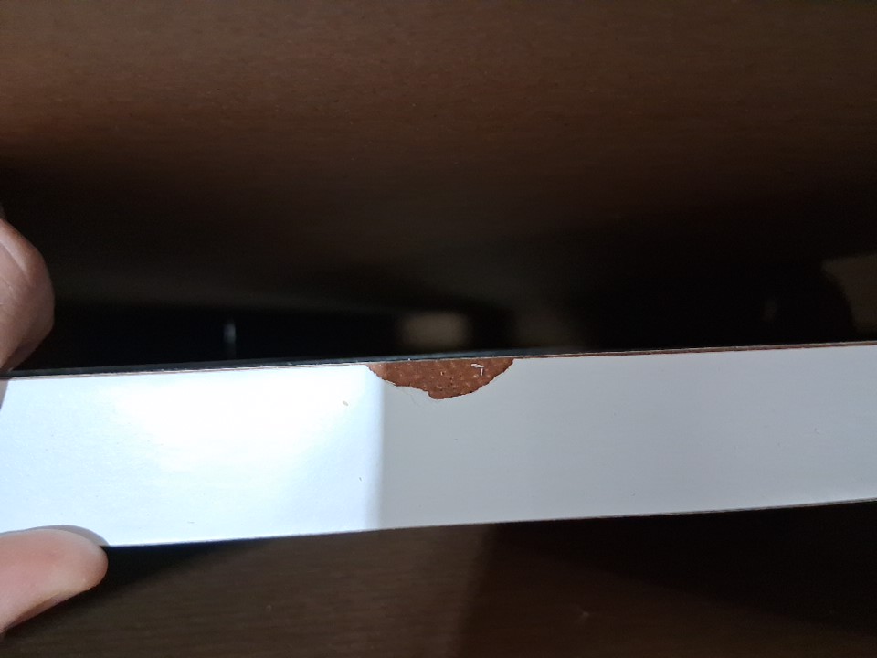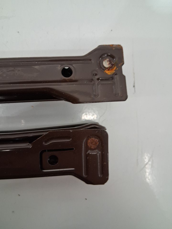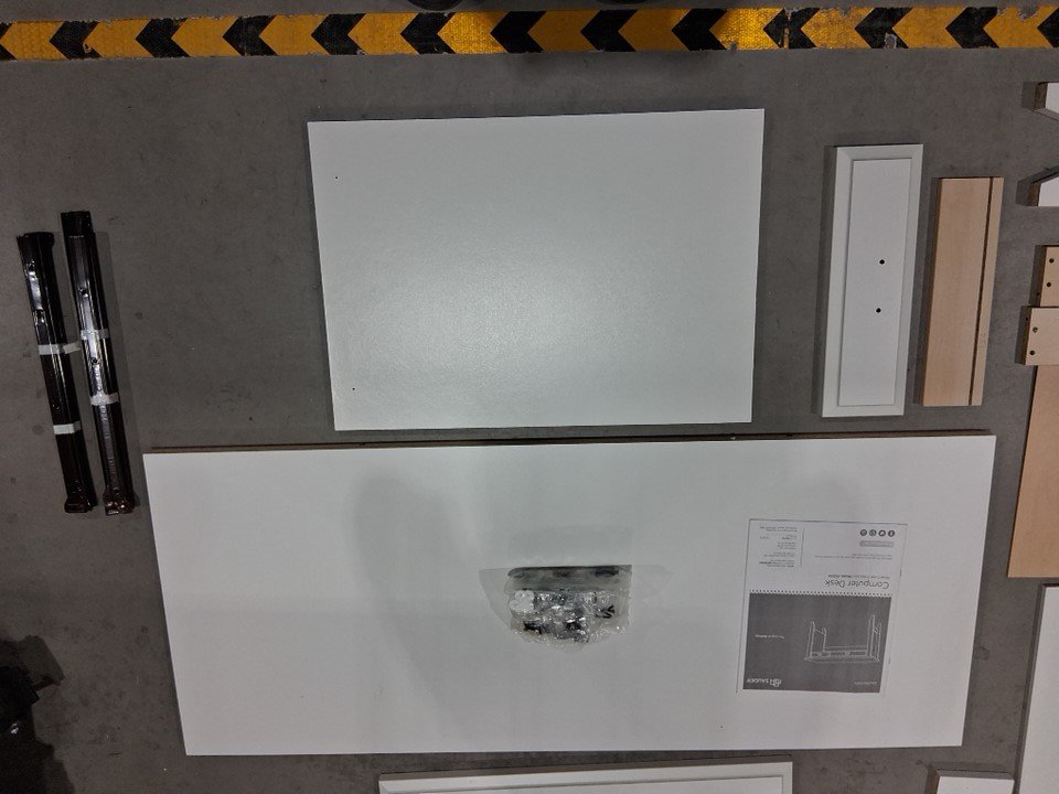 Item has rust on the drawer sliders and a small chip out of the side of the main desk top piece, please see photos