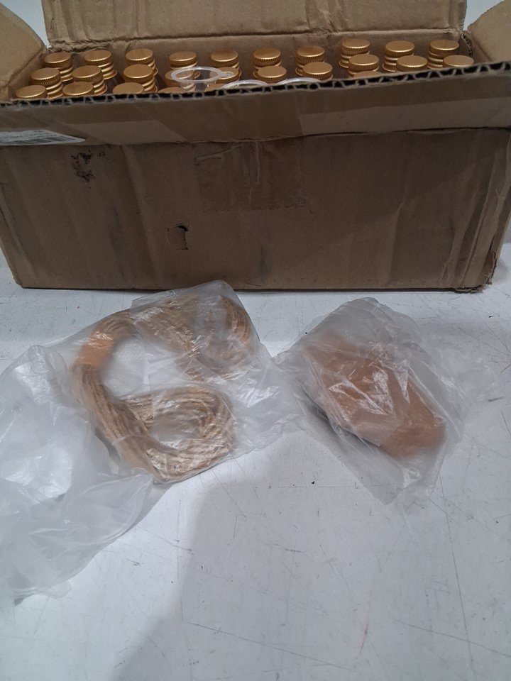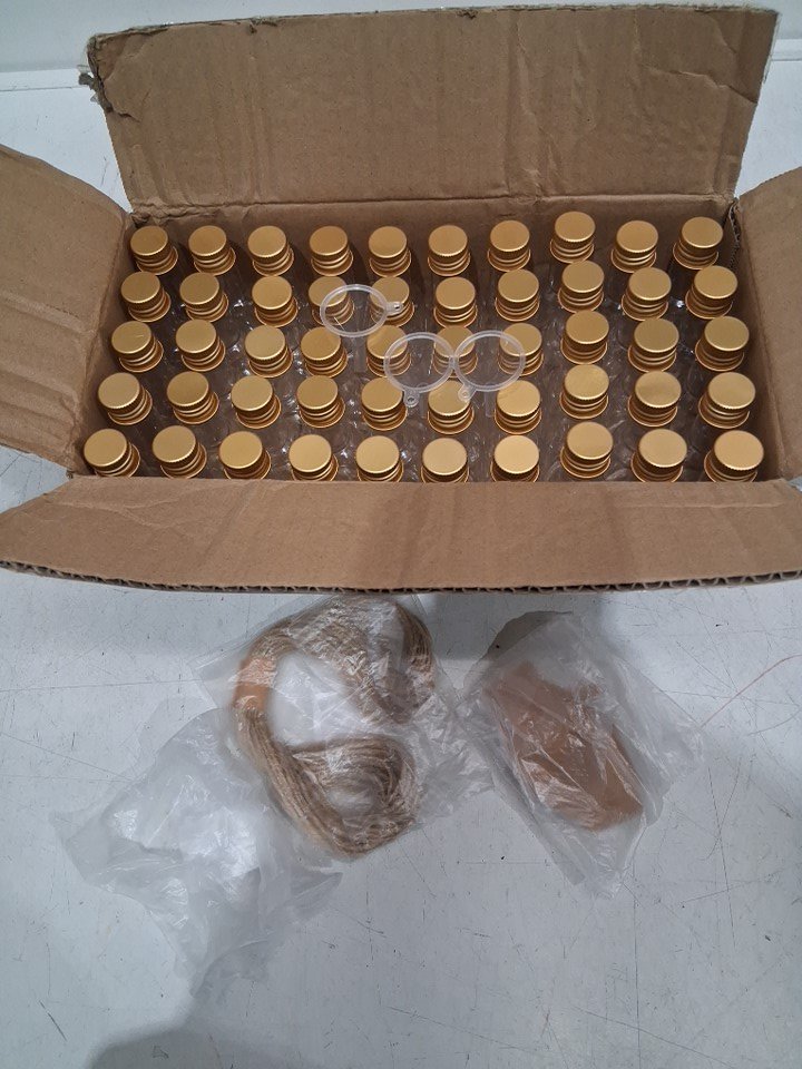 50PK craftshou Mini Liquor Bottles WITH Storage with Labels & Funnels - 30ML - CLEAR/GOLD