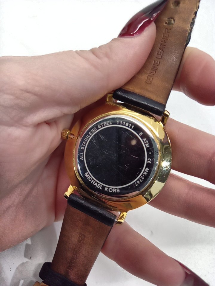watch has been previously used, some damage to leather strap watch needs battery replacement