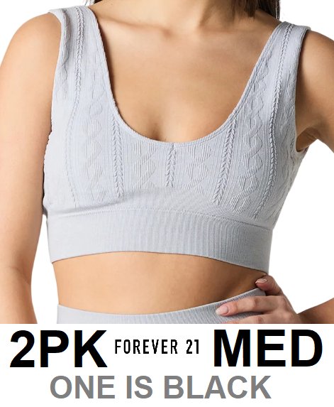 2pk women's Active Seamless Textured Sports Bra - medium - grey/black (style: f21-86-115)