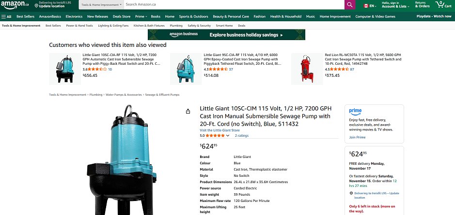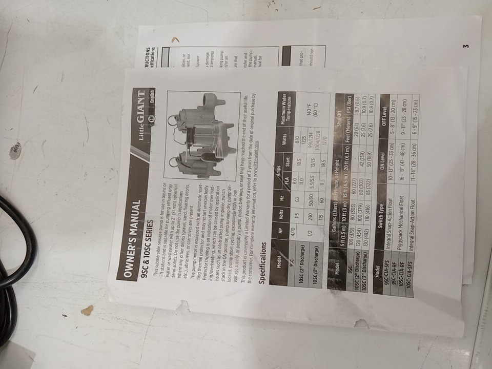 Little Giant 7200 GPH Cast Iron Manual Submersible Sewage Pump - 15 Volt -1/2 HP - blue & black (model:511432)