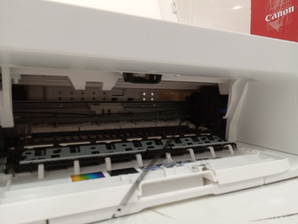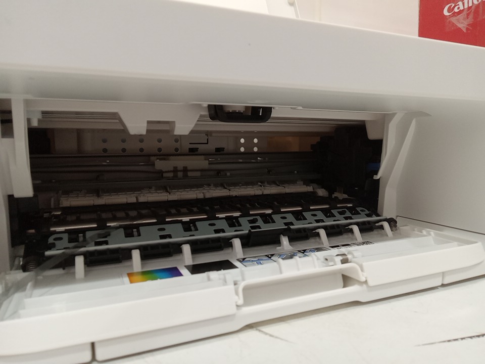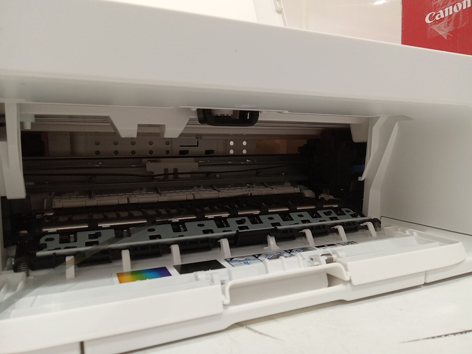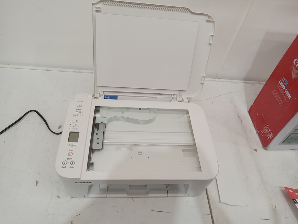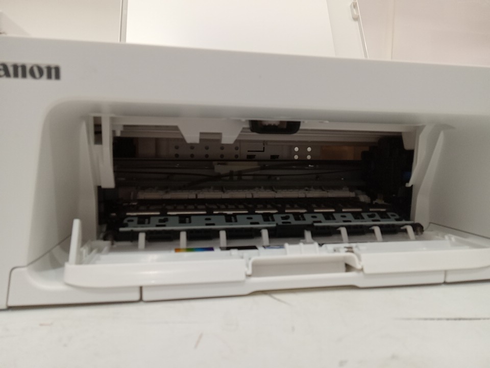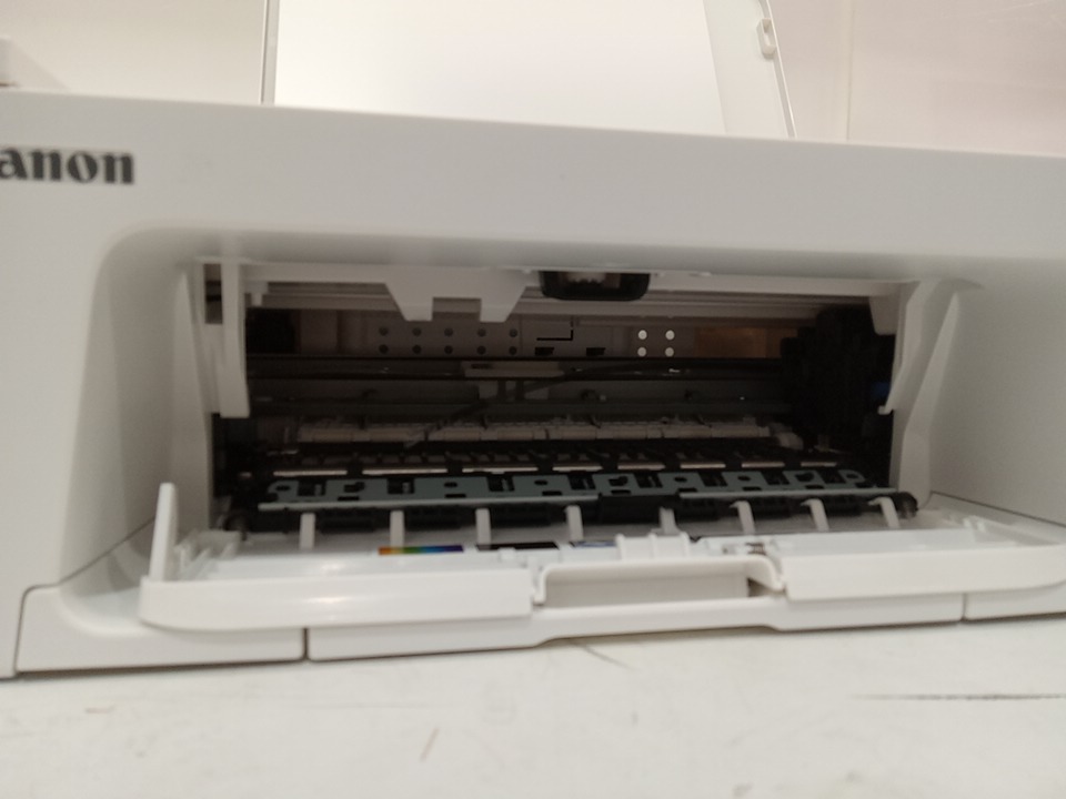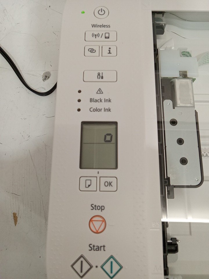 when plugged in this item powers on however the only thing that shows up on the control panel is the "o". this seems to be a issue with this printer as we could hear a mechanism inside the printer jamming, we are unsure if this could be fixable with repairs as we are unsure about the error message and what it means. this item is also missing ink cartridges. see photos below.