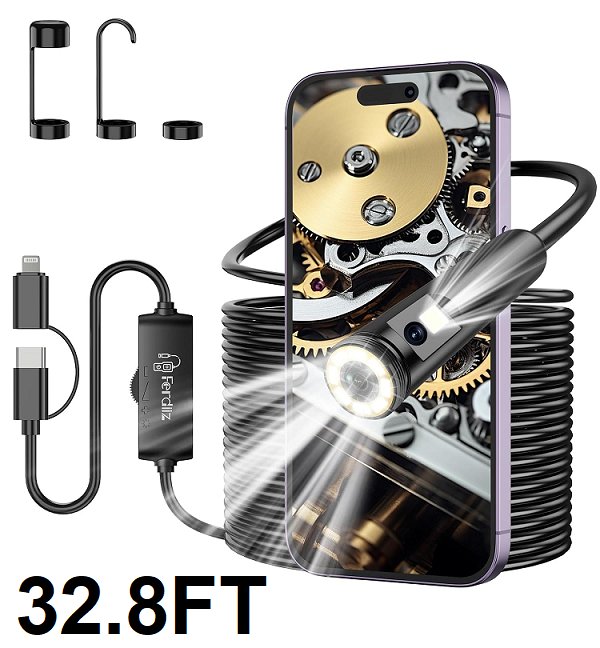 3-In-1 USB waterproof lightning endoscope cable - 32.8FT - black - (Model: AN113)