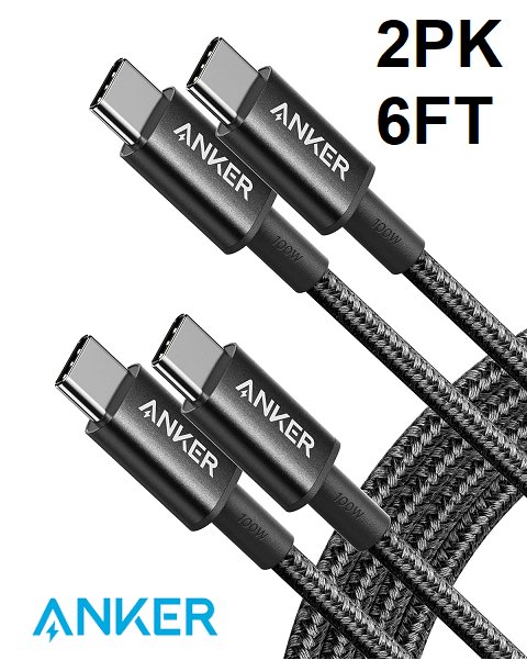 2pk Anker Fast Charging USB-C to USB-C Cable - 6ft - grey - (model: b8757)