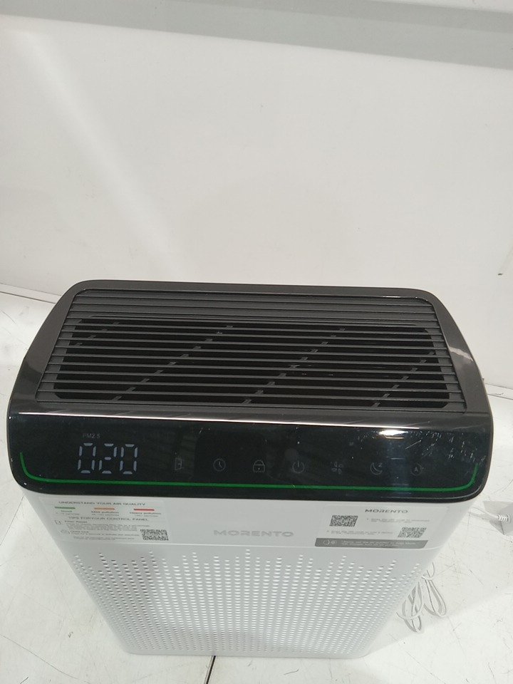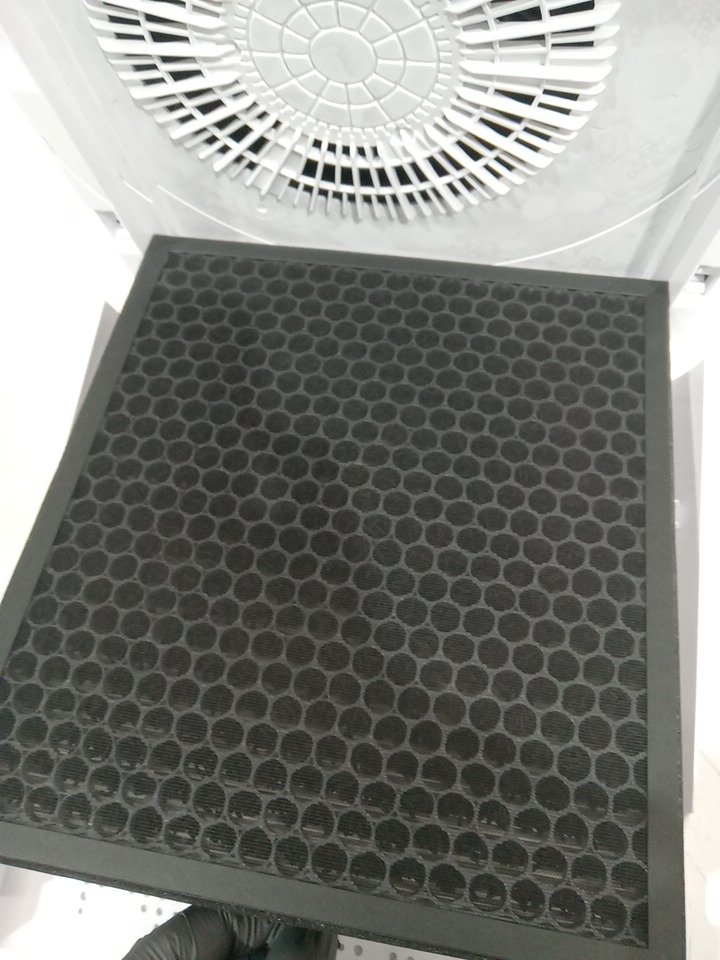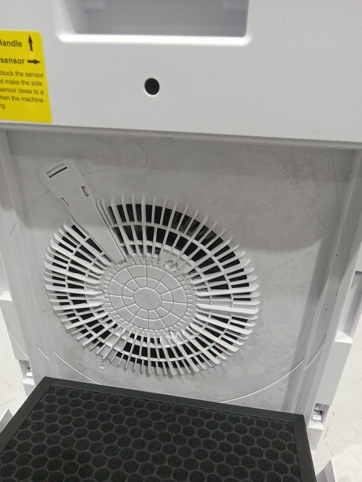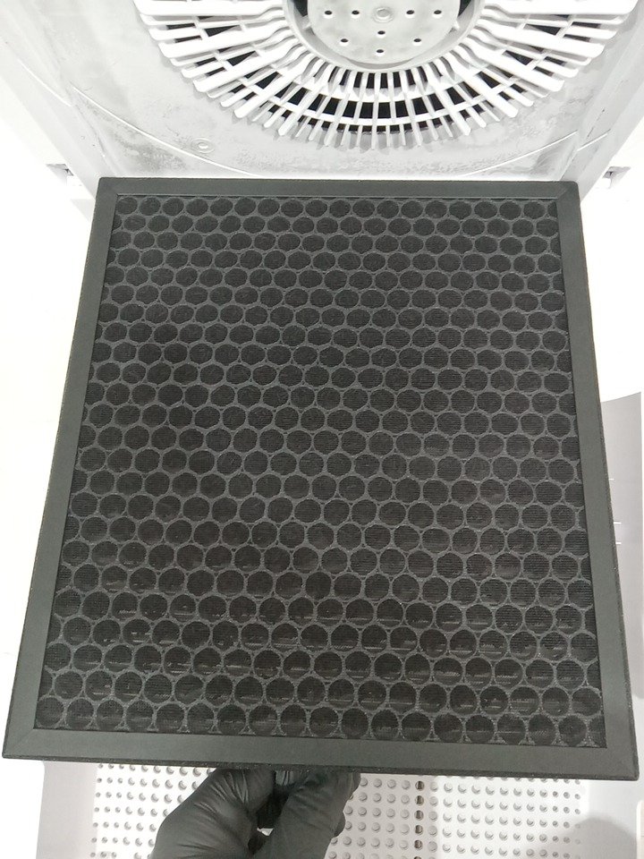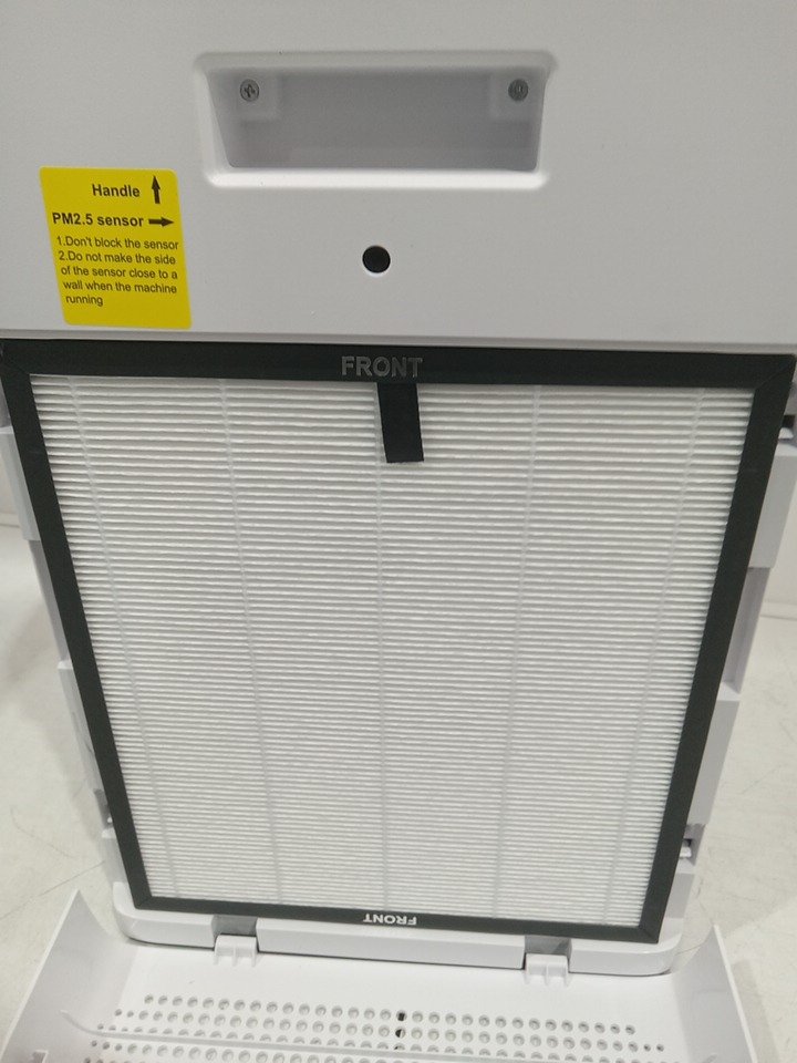 There are scratch marks on the top black glossy control panel and there are minor black charcoal residue The filter appears to be new. Tested for power and motor function only. (Please see photos)
