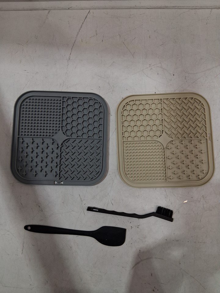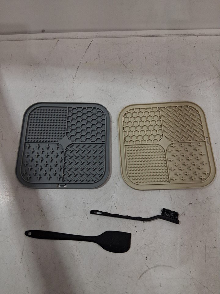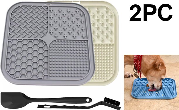 2PC DOG & CAT LECHE MAT WITH SUCTION CUP - LARGE - GREY/BEIGE (MODEL: DogMat-GrayBeige-2Pcs)