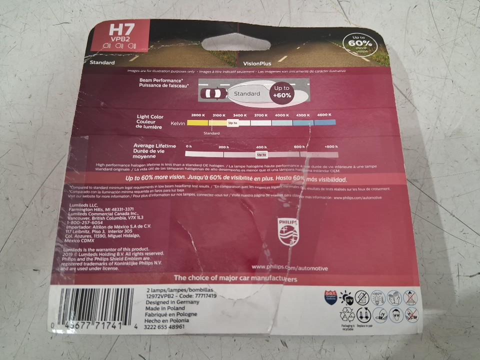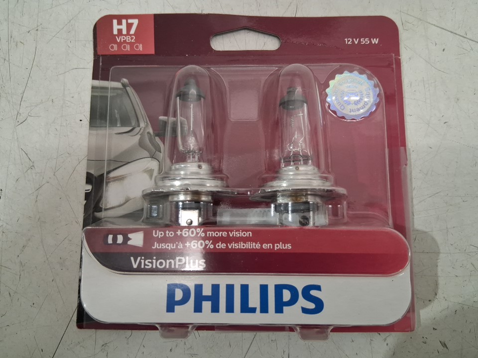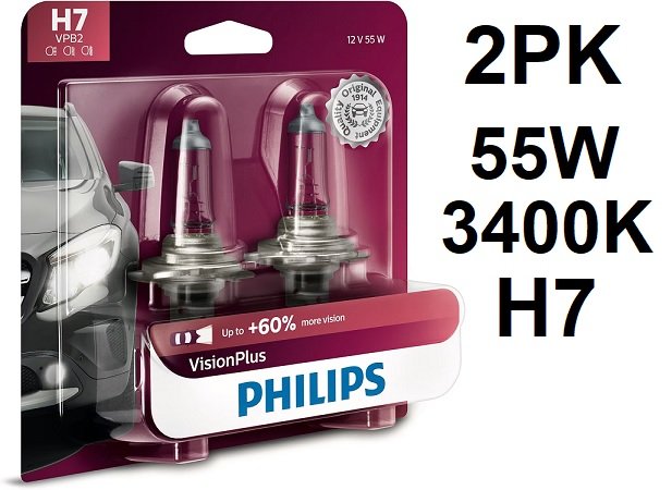 2PK PHILIPS VISION PLUS HEADLIGHT BULB - 55W - 3400K (model: H7VPB2)