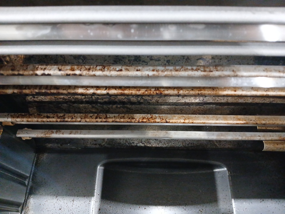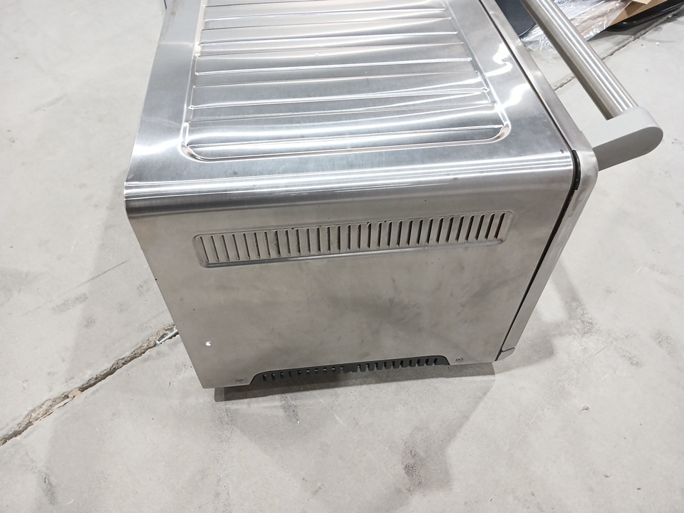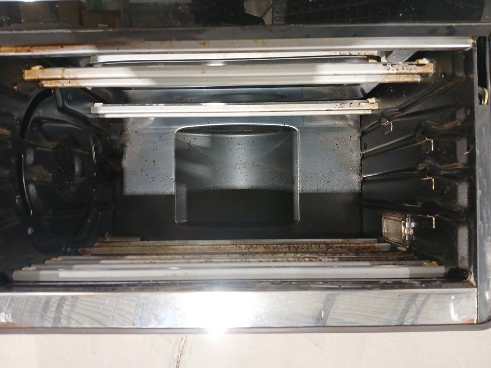 This item is very dirty, has burnt food residue, has dents, and has scratches. This item has been tested for power