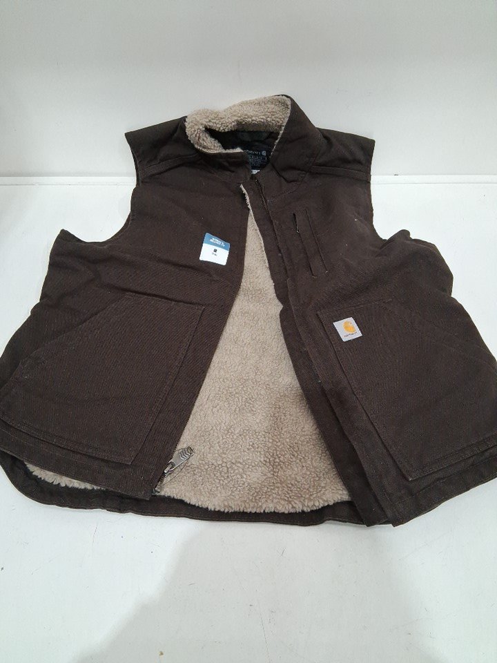 women's carhartt relaxed fit washed duck sherpa-lined mock-neck vest - medium (8/10) - dark brown (model:ov4277-w)