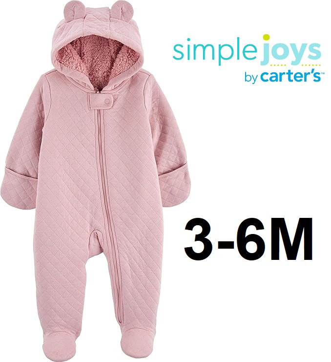 infant Baby Simple Joys by Carter's 'bear hugs' Fleece Footed Jumpsuit Pram - 3-6 months - pink