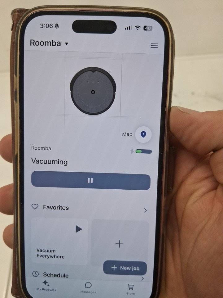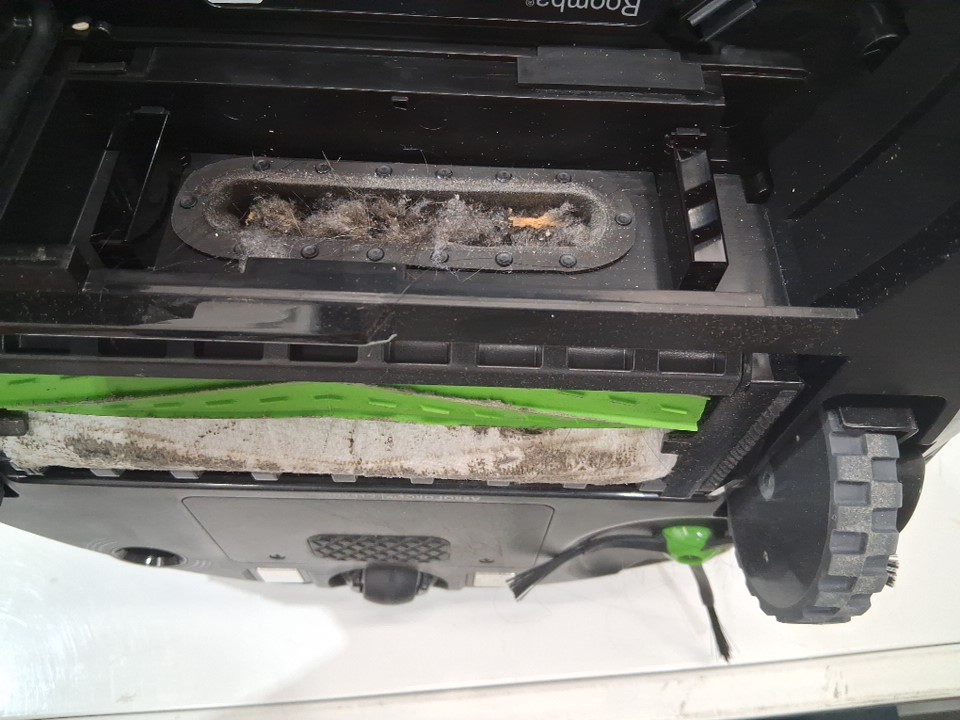 Tested for power, suction, mobility, return to base, charging and wifi/app connectivity. There is a good amount of dust on the underside and inside of the vacuum, and one of the rollers is missing the outer rubber, indicating prior ownership/use - see photos. Outside of this missing part, the vacuum appears to be in good condition and function without issue.