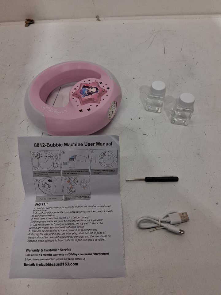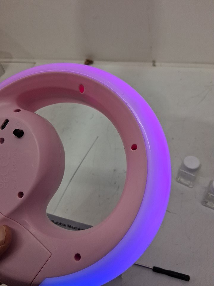 Handheld rechargeable bubble machine blower for kids with LED light and bubble solution - multicolour