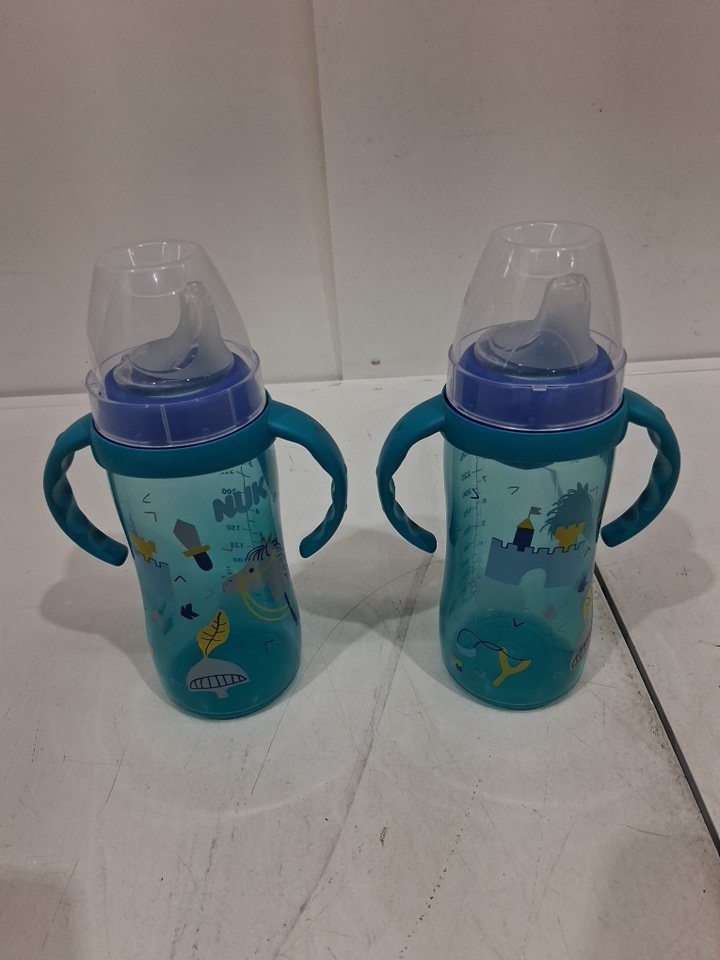 2PK NUK LARGE LEARNER CUP FOR BABIES - SIPPY CUP BOTTLE WITH HANDLES - 10OZ - BLUE/TEAL
