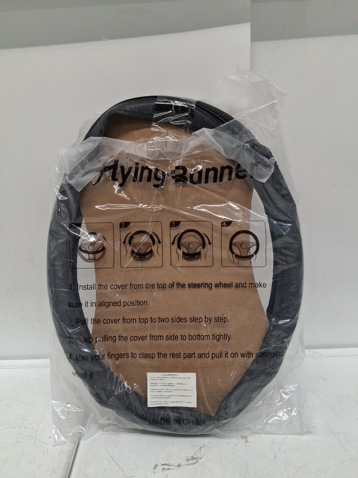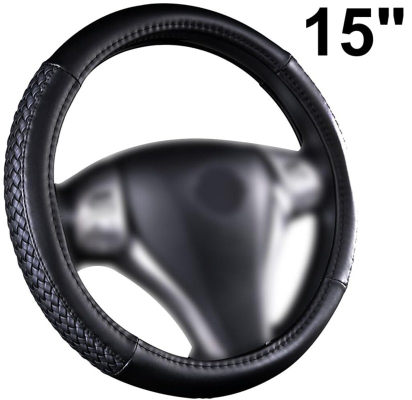 FLYING BANNER FAUX LEATHER ANTI-SLIP STEARING WHEEL COVER - UNIVERSAL - 15" - BLACK (model: FB-043)