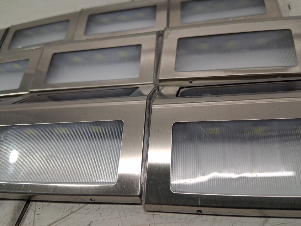 There are some light scratches/scuff marks on the top of the lights as well as rust on the screws on the back indicating previous use. Please note that one of the lights has a crack on it (see photos) Unable to test for power