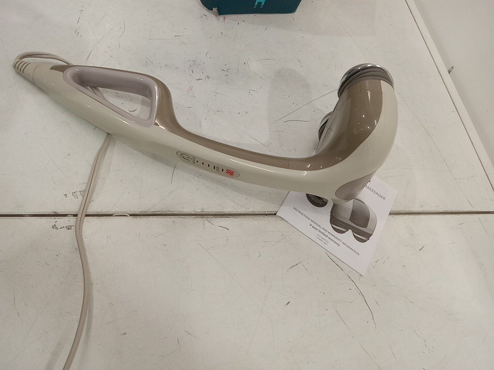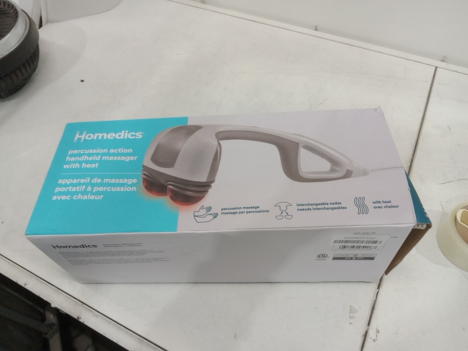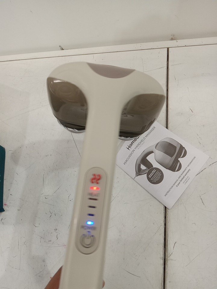 HOMEDICS PERCUSSION ACTION HANDHELD DUAL-HEAD MASSAGER WITH HEAT & 4 VIBRATION SETTINGS - Beige (MODEL: HHP-350C-CA)