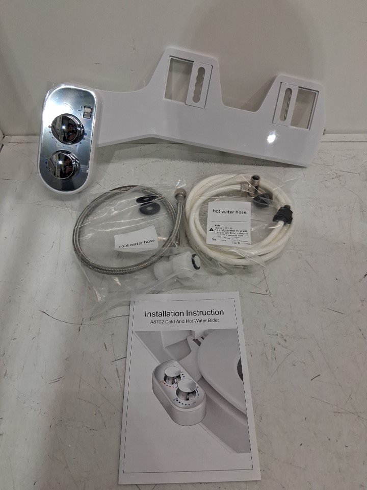 DOOLV HOT & COLD BIDET TOILET ATTACHMENT WITH NON-ELECTRIC ADJUSTBLE PRESSURE CONTROL - WHITE/Chrome